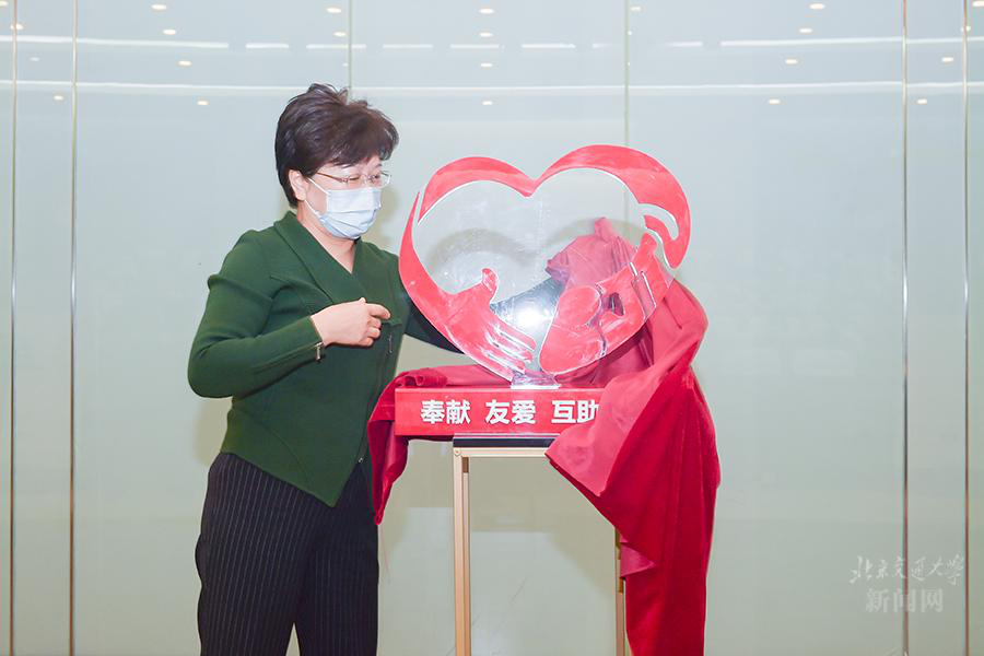 会上,高艳发布并介绍教师志愿者服务团标志。她希望广大教师志愿者用爱心和温暖环抱社会,打造交大教师志愿服务品牌,塑造交大教师良好社会形象。