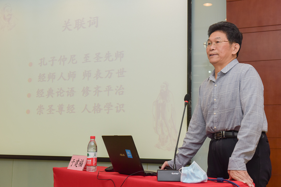 于建福教授以《经师与人师——从至圣先师孔子说起》为题,从孔子生平、《论语》经典谈起,提出新时代高校教师要做到“经师”和“人师”相统一,学为人师,行为世范,做党和人民满意的“四有”好老师,做有大视野、大胸怀、大格局、大担当、修己安人的“大先生”。