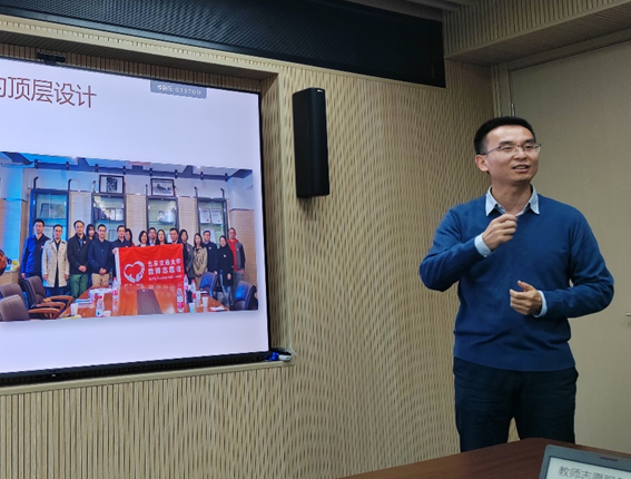 电子信息工程学院周达天作为教师志愿者团老成员代表,分享了亲身体验的教师志愿服务团的发展历程,介绍了志愿服务活动背后的难忘点滴,有在建国门街道的所见所闻,也有在新村街道志愿服务过程中新的收获,并向新成员发出了诚挚的欢迎。